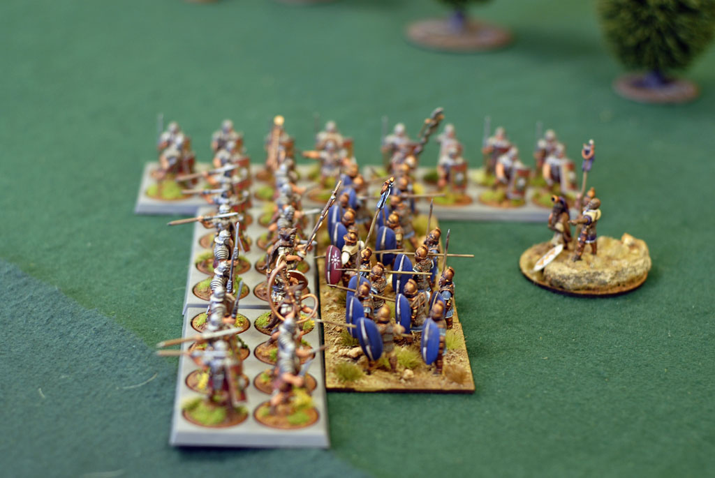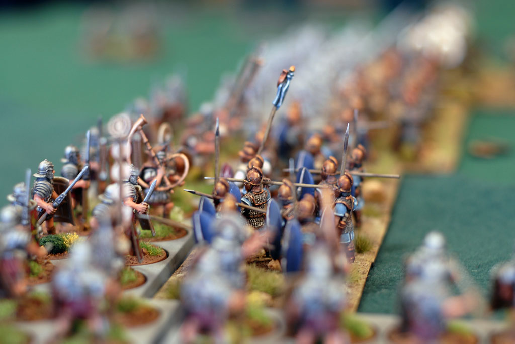| The Veterans of the Azure Shield press the Romans. |